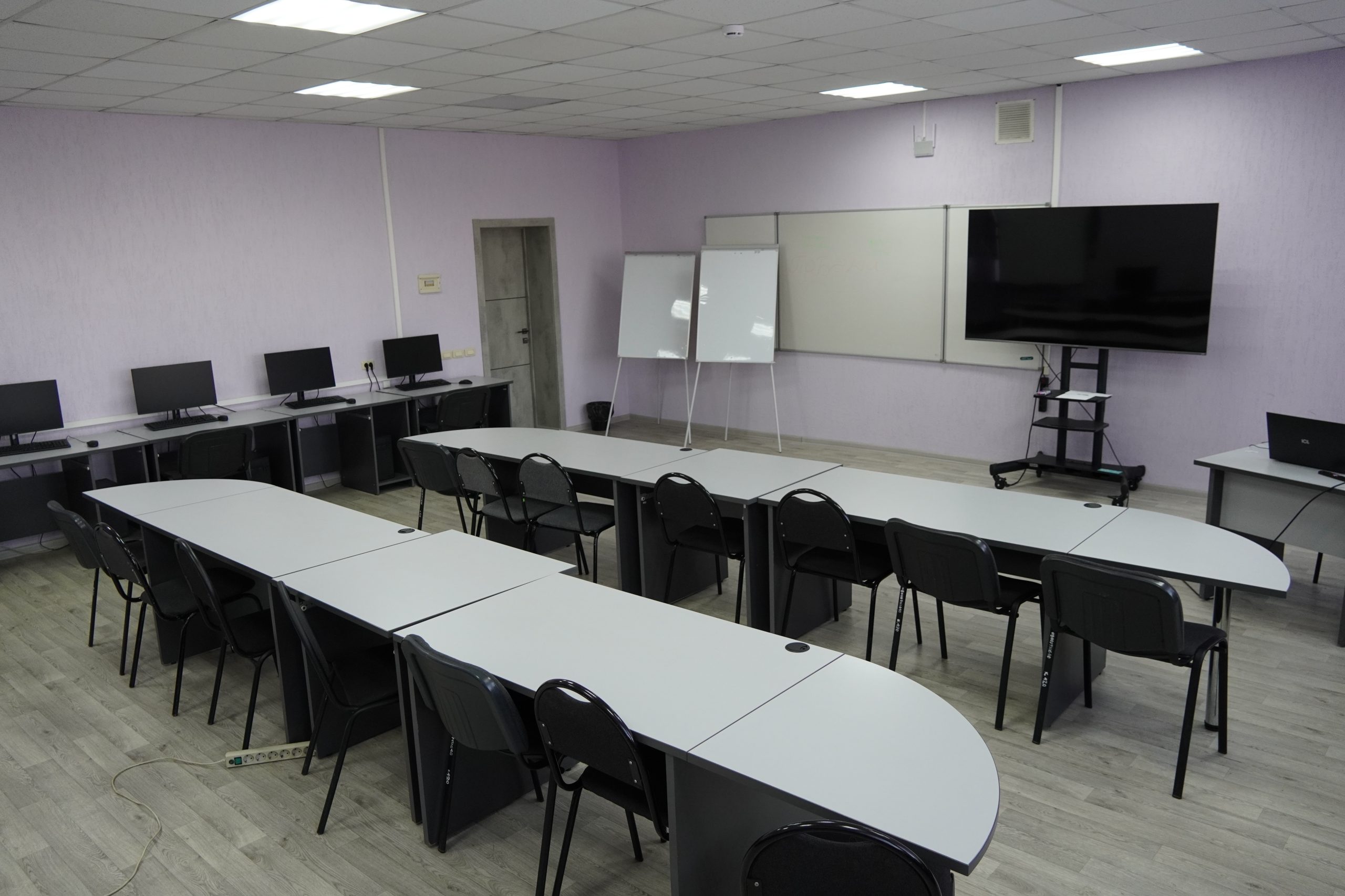 20 современных аудиторий, кабинет для проведения психологических тренингов, актовый зал на 150 мест.