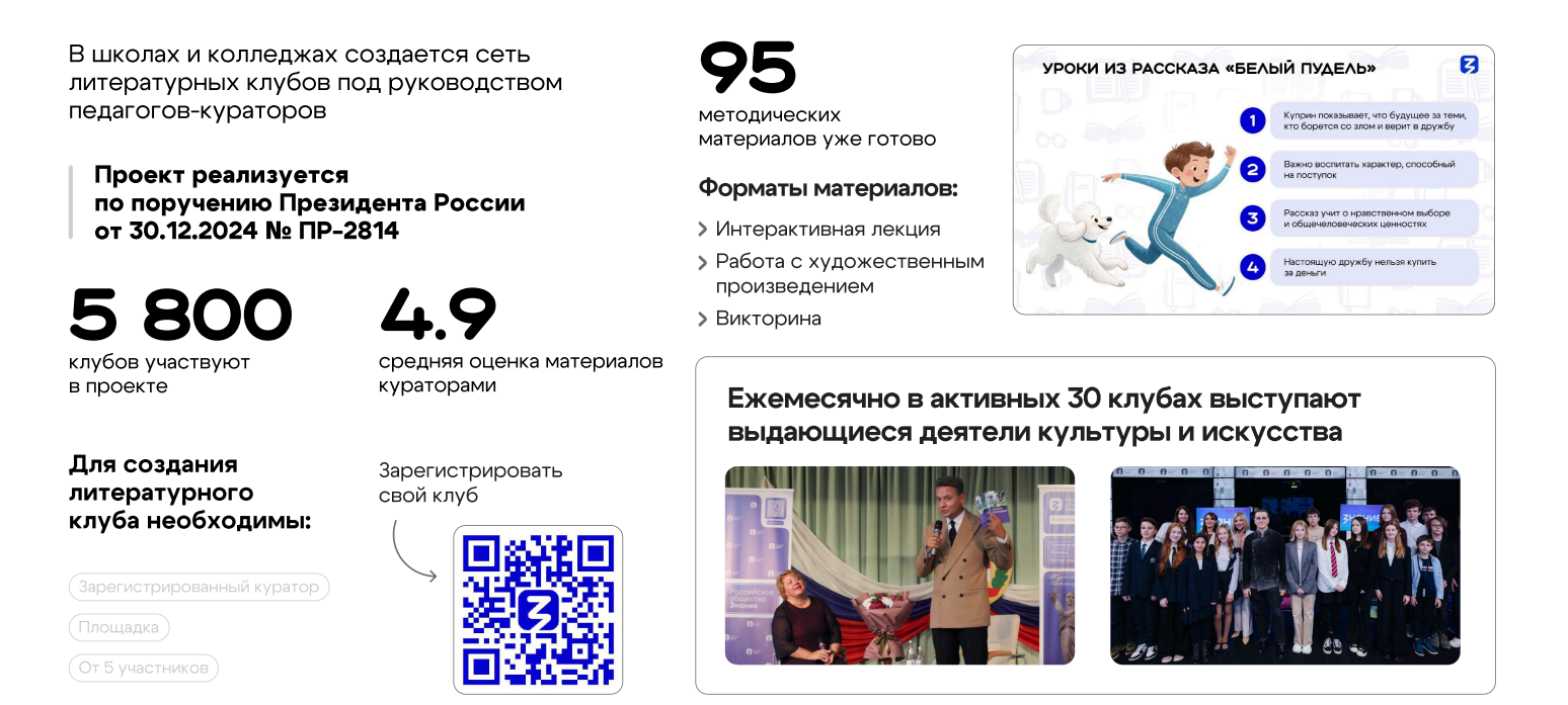 В школах и колледжах создается сеть литературных клубов под руководством педагогов-кураторов.