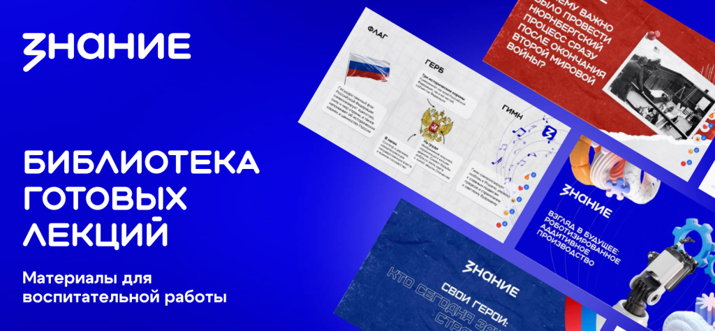 Проект Знание.Лекторий включает в себя открытые уроки, лекции, мастер-классы от топовых лекторов страны, которые готовы поделиться своим опытом и показать молодежи возможности для самореализации. Проведение лекций приурочено к памятным датам. Лектором также может стать любой педагог, воспользовавшись библиотекой готовых лекций.