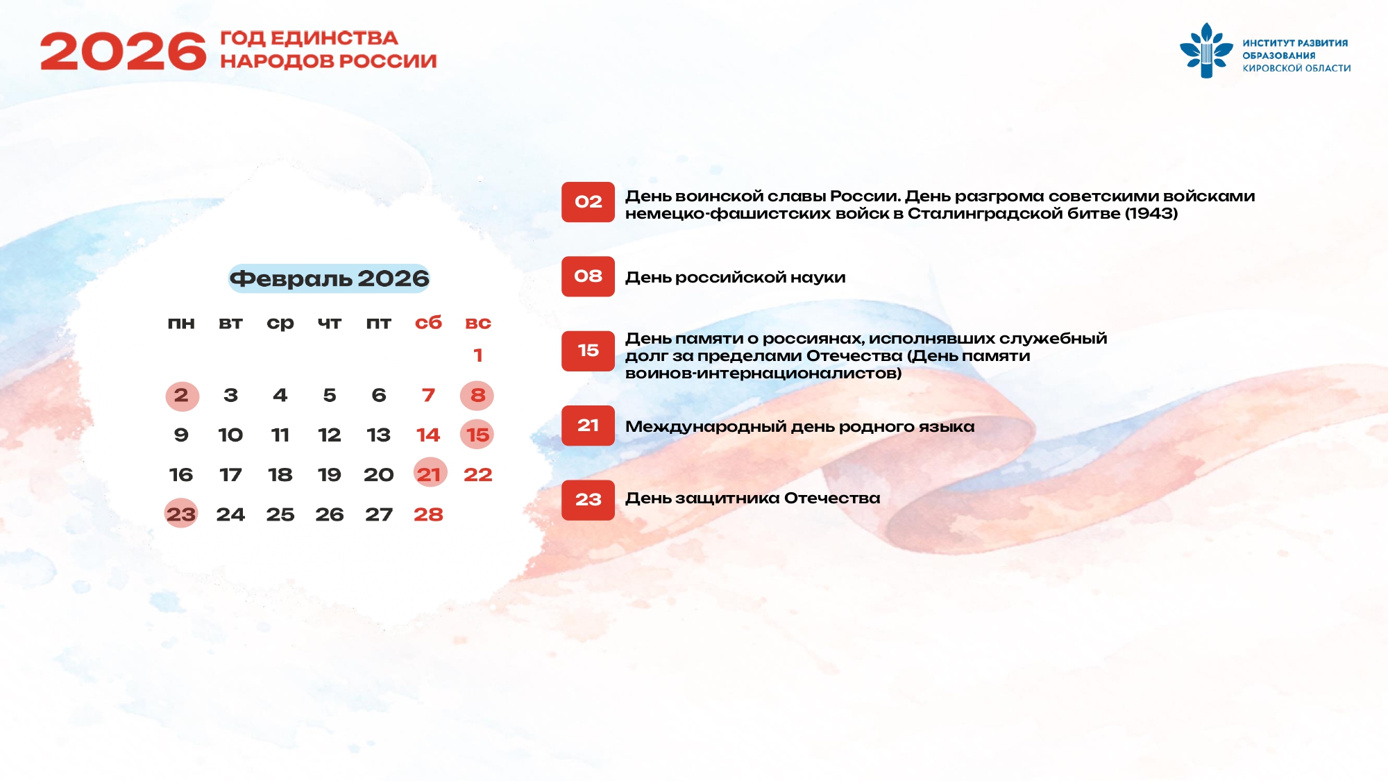 Календарь памятных дат истории системы образования России и Кировской области 2026