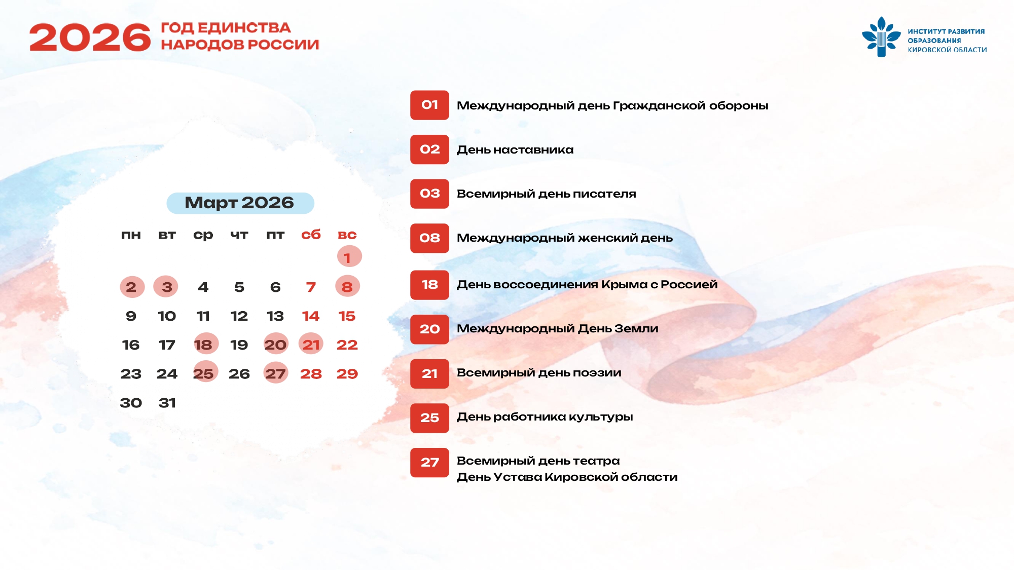 Календарь памятных дат истории системы образования России и Кировской области 2026