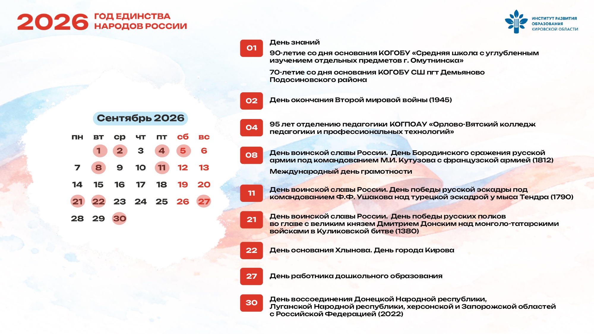 Календарь памятных дат истории системы образования России и Кировской области 2026