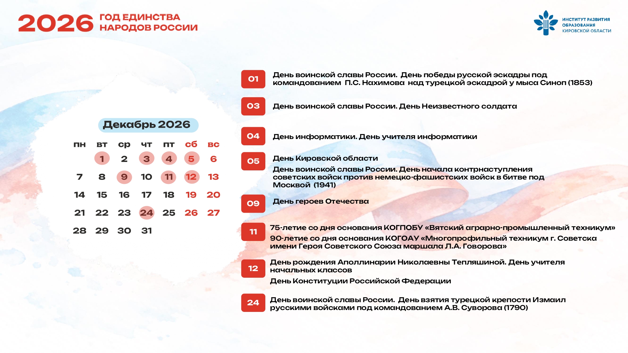 Календарь памятных дат истории системы образования России и Кировской области 2026